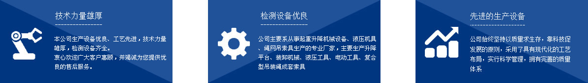 泰州市如意機械設備有限公司,座落在中國海軍誕生地江蘇泰州市,緊連328國道,東有鐵路相連,同時有滬寧、寧通高速公路相交,地理位置十分優(yōu)越,自然環(huán)境得天獨厚。 本公司系從事起重升降機械設備、液壓機具、繩網(wǎng)吊索具生產(chǎn)的專業(yè)廠家,主要生產(chǎn)千斤頂、液壓拉馬、軸承加熱器、升降平臺、裝卸機械、液壓工具、電動工具、復合型吊裝繩成套索具、高強纖維柔性吊裝帶、起重鏈條成套索具、橫梁吊具、注塑繩、軟梯、安全帶、安全網(wǎng)等幾大系列、上百種規(guī)格的產(chǎn)品,廣泛應用于電力、油田、大型鋼廠、機電、化工、航空、冶金、機械、鐵道、造紙、港口、建筑等領域。 本公司生產(chǎn)設備優(yōu)良、工藝先進,技術(shù)力量雄厚,檢測設備齊全,其中升降平臺、千斤頂、吊具、加力扳手、液壓矩扳手經(jīng)泰州質(zhì)量技術(shù)監(jiān)督局監(jiān)督檢驗 ...[點擊詳情] |